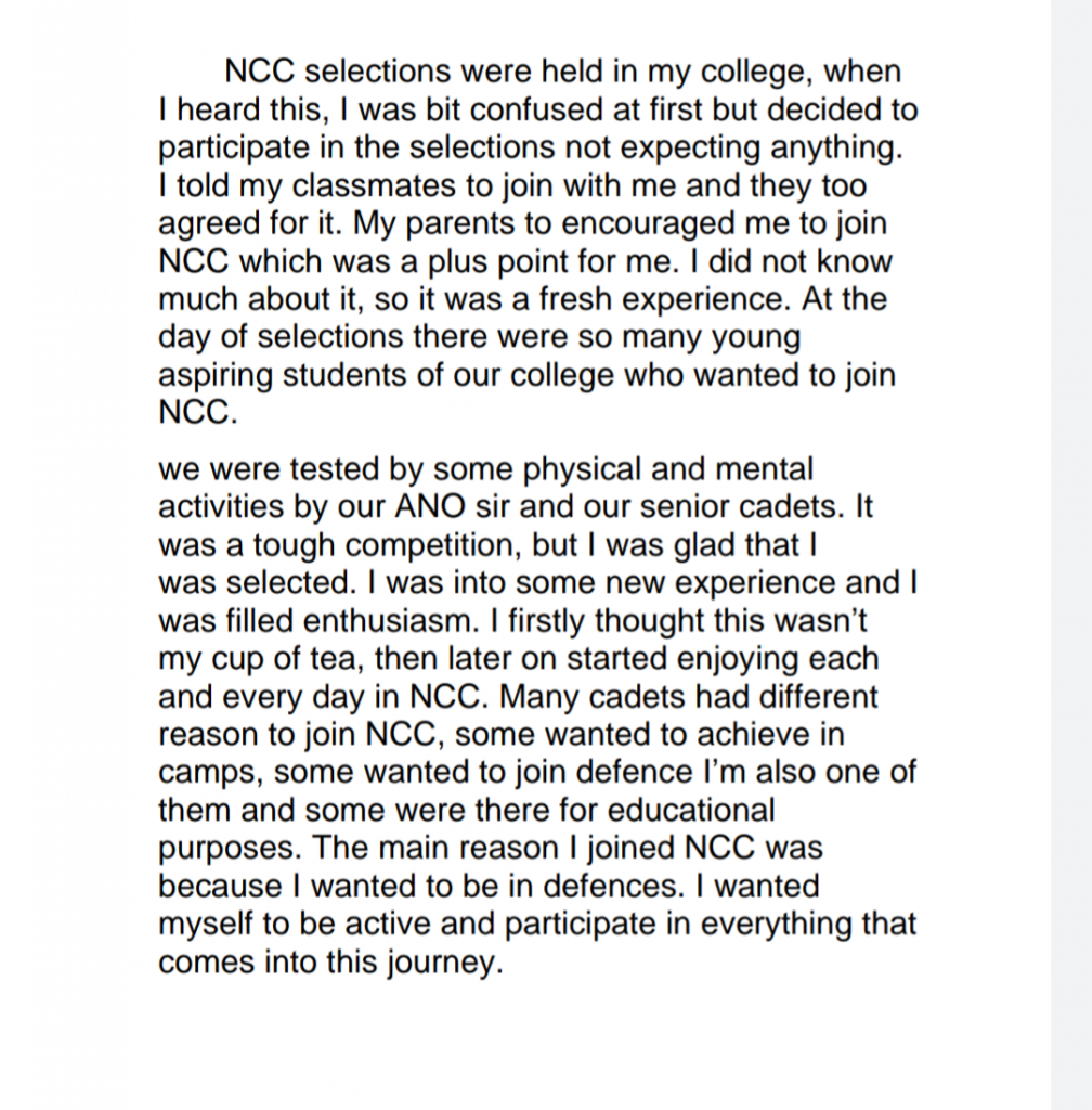 Article on experience in NCC by a cadet of 8 MP Bn NCC, ITM University, Gwalior