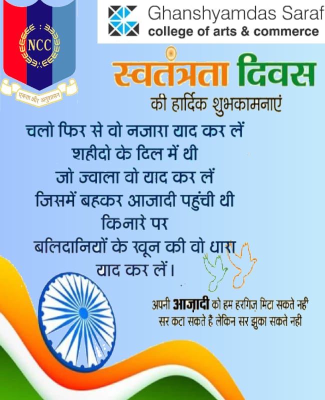 Jai Hind Happy Independence Day My self Jayant Choudhary from No.1 MP Air Squadron NCC , Indore