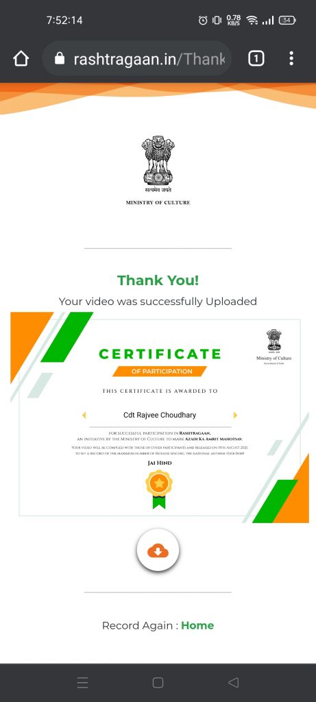 We have sung our national anthem on the occasion of 15 August , An initiative taken for youth encouragement.