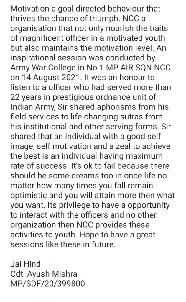 Cdt Sudip Kumar Maity Regimental no. WB20SDF115245 NCC Directorate of WB & Sikkim