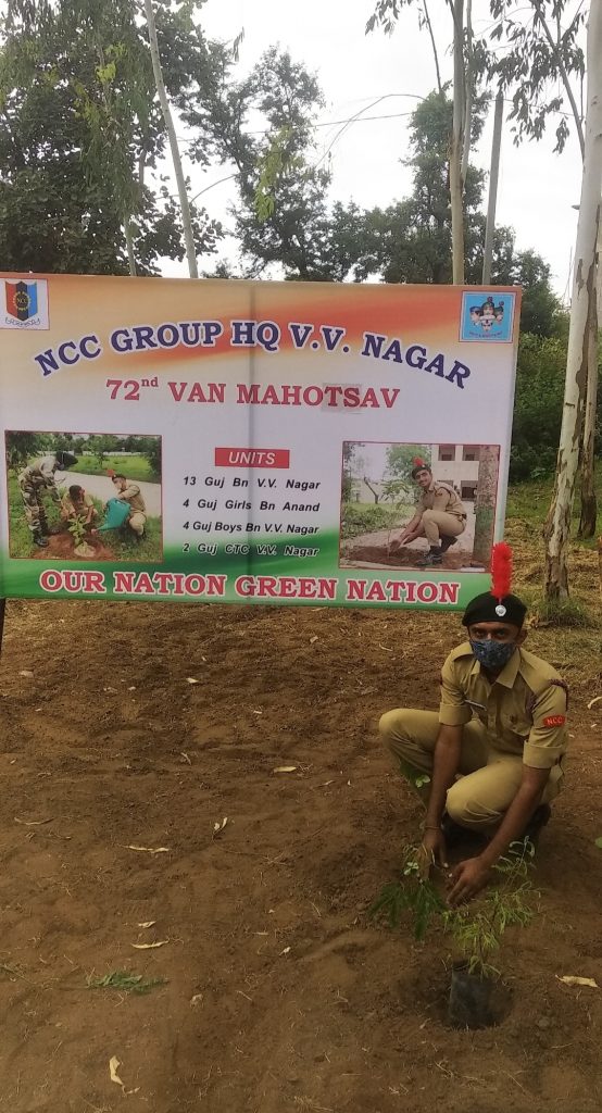 #EkMaiSauKeLiye Ph6. Gujarat NCC Vriksha Ropan Abhiyan.Cdt Piyush Ravaliya of #Guj NCC Dte, #13Bn, Anand, planting saplings at Sunav to make our nation green. @DefencePRO_Guj @HQ_DG_NCC @CMO GUJ @GovernorofGuj