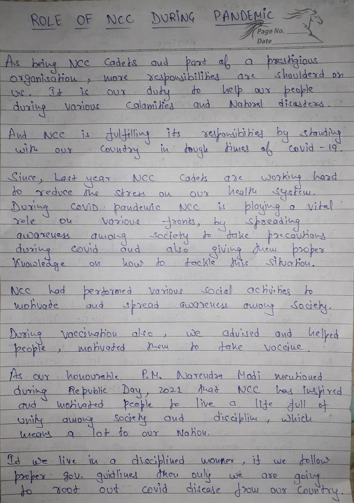 ROLE OF NCC DURING COVID PANDEMIC