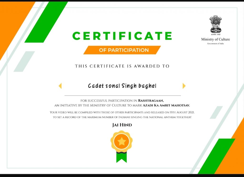 Cadet Sonal Singh baghel 2nd year, No.1 MP AIR SQUADRON NCC INDORE , MP &CG