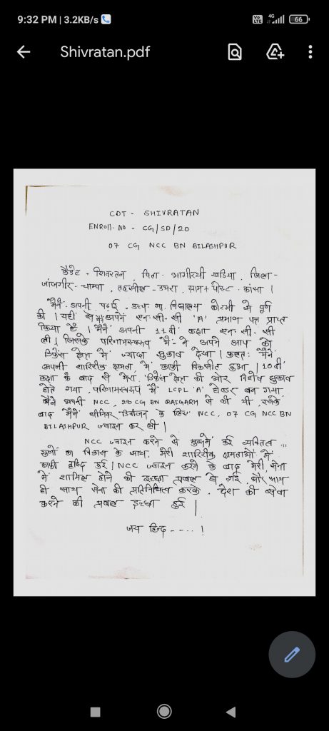 Cadet Harkat Kinjal H from 3 gujrat girl's bn ncc Bhavnagar smt v.p. kapdiya mahila arts college bhavangar