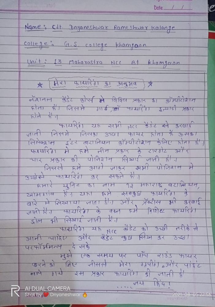 NCC (National Cadet Corps) It was my utmost dream to wear NCC uniform. At the age of 14, I understood that NCC has a lot of respect that I started inquiring about NCC from my elder cousins and seniors in school.
