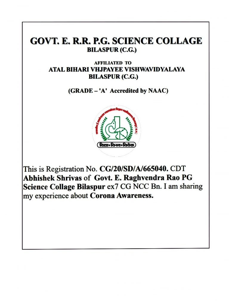 Cdt Name:- Ku. Sneha Rajkumar Patonde Rank :-Cdt College Name:- Smt.RDG College For Women Akola Reg No. :-MH20SWA340661